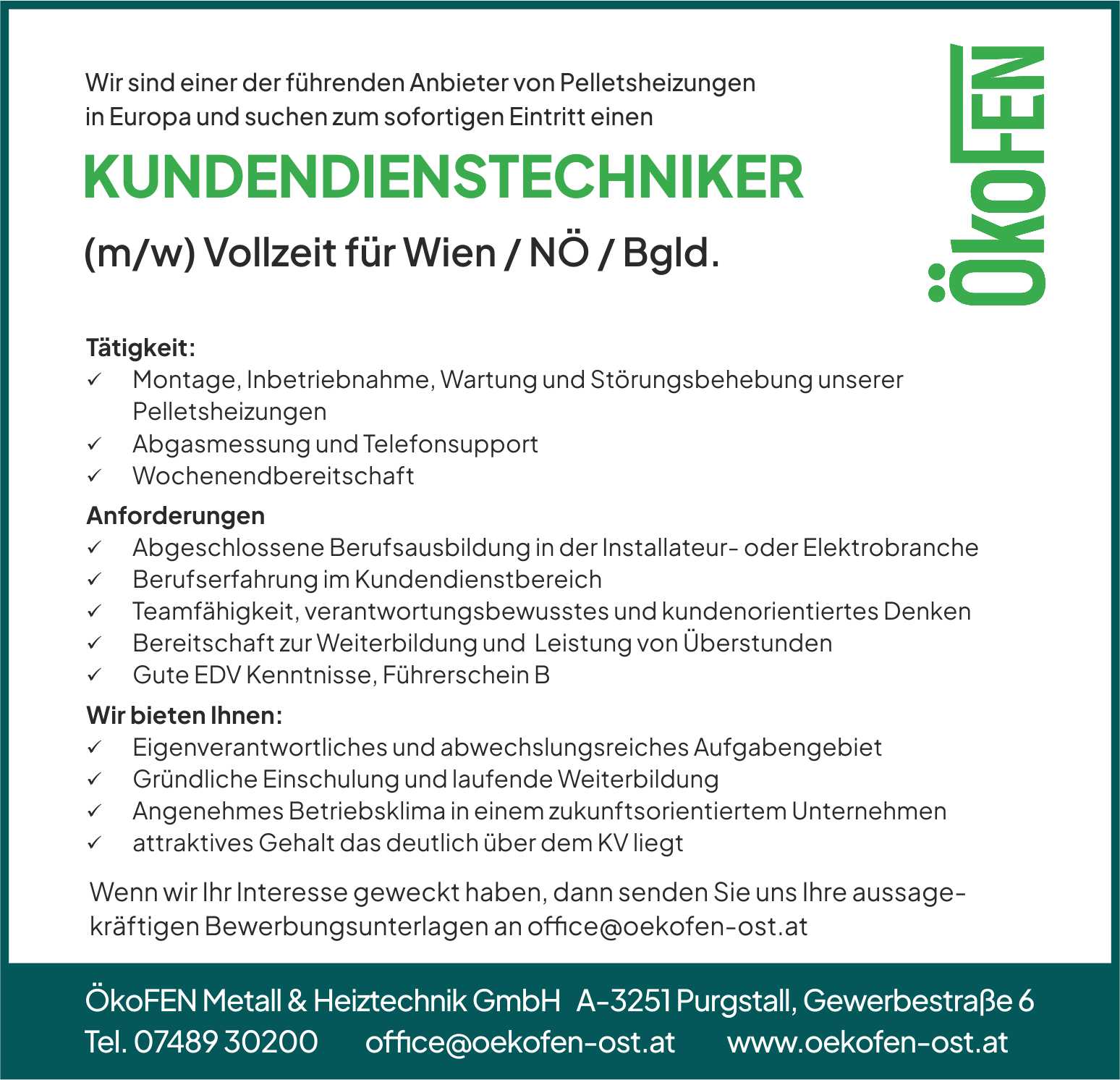 Aktuell suchen wir einen Kundendiensttechniker für Wien, NÖ und Burgenland.